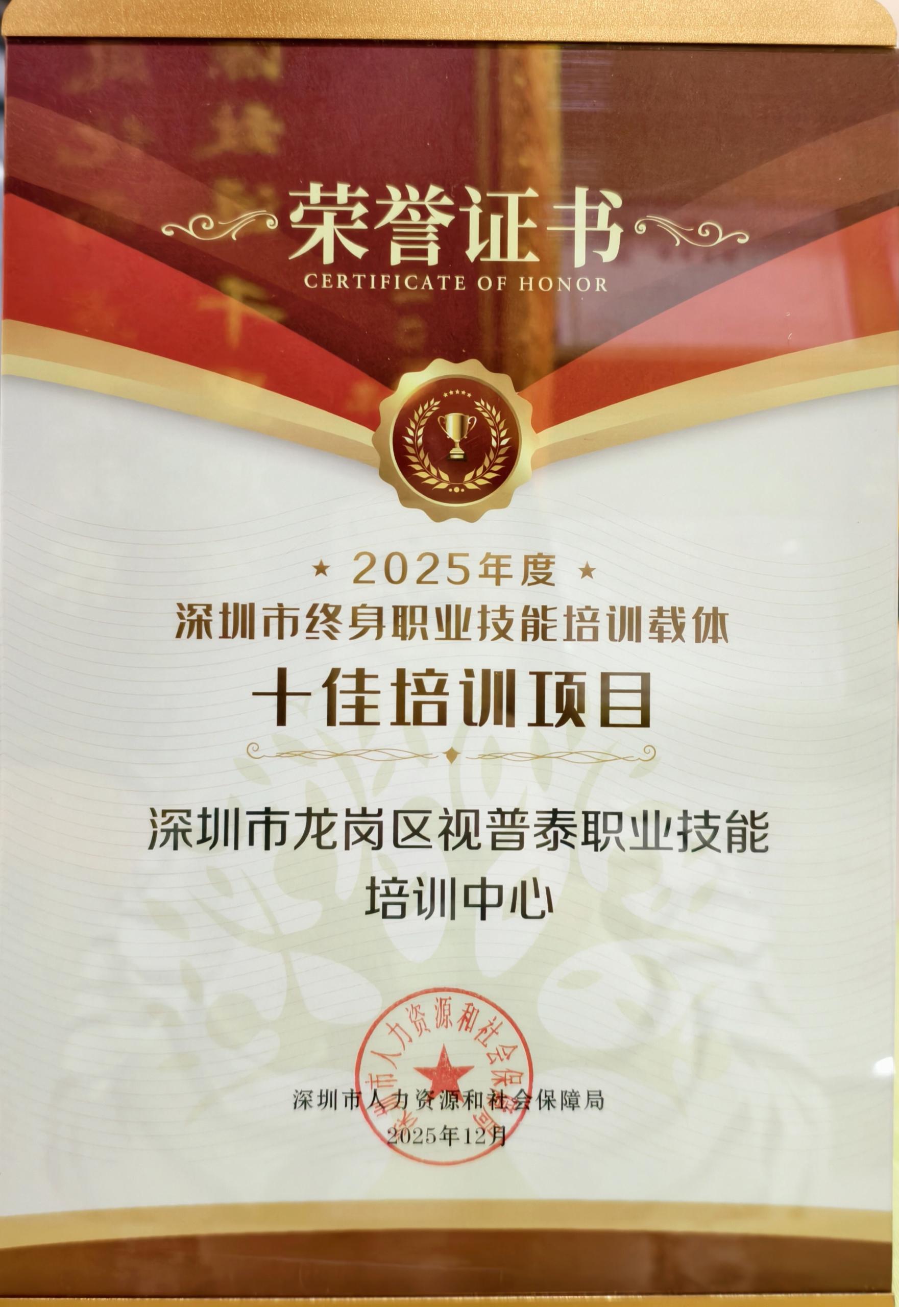 12月17日,临近年关之际,视普泰再获殊荣!视普泰职业技能培训中心被评为2025年度深圳市终身职业技能培训载体“十佳培训项目”获奖单位!